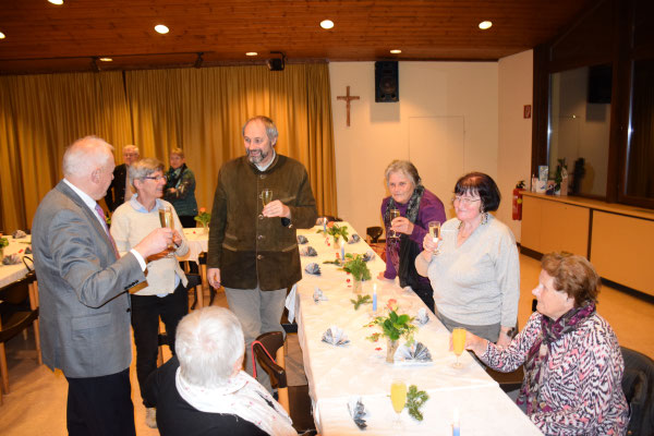 Pater Schorsch (Georg) Hopf feiert gemeinsam mit Pfarrmitgliedern von St. Claret - Ziegelhof und Hirschstetten seinen 70. Geburtstag. Nach einer gemeinsamen Jause im Pfarrsaal der Pfarre Hirschstetten geht es gemeinsam zur Vorabendmesse. Anschließend gibt Ansprachen, Gedichte und Geschenke... Und natürlich auch ein gutes Wiener Schnitzerl zum Abendessen.